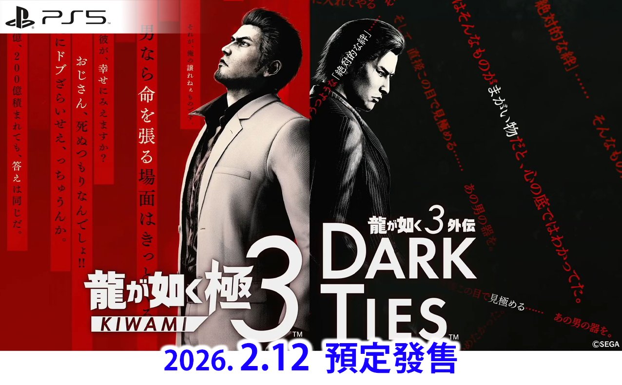 (預訂訂金 $100) (總價 $418) (行版) PS5 P5 人中之龍 極 3 / 人中之龍 3 外傳 Dark Ties (中英日文字幕)