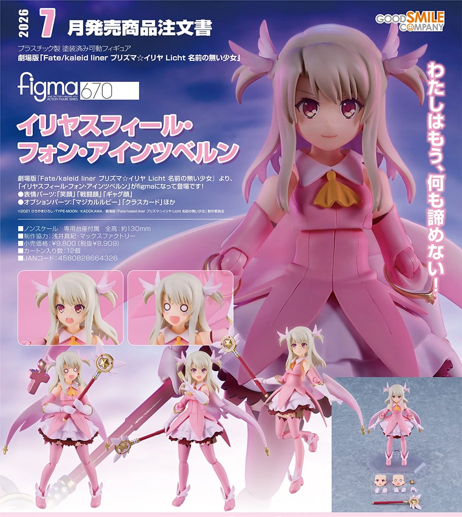 (預訂訂金 $200) (總價 $480) GSC figma 670 Fate/kaleid liner 魔法少女☆伊莉雅 Licht 無名少女 伊莉雅絲菲爾·馮·愛因茲貝倫 (行版)