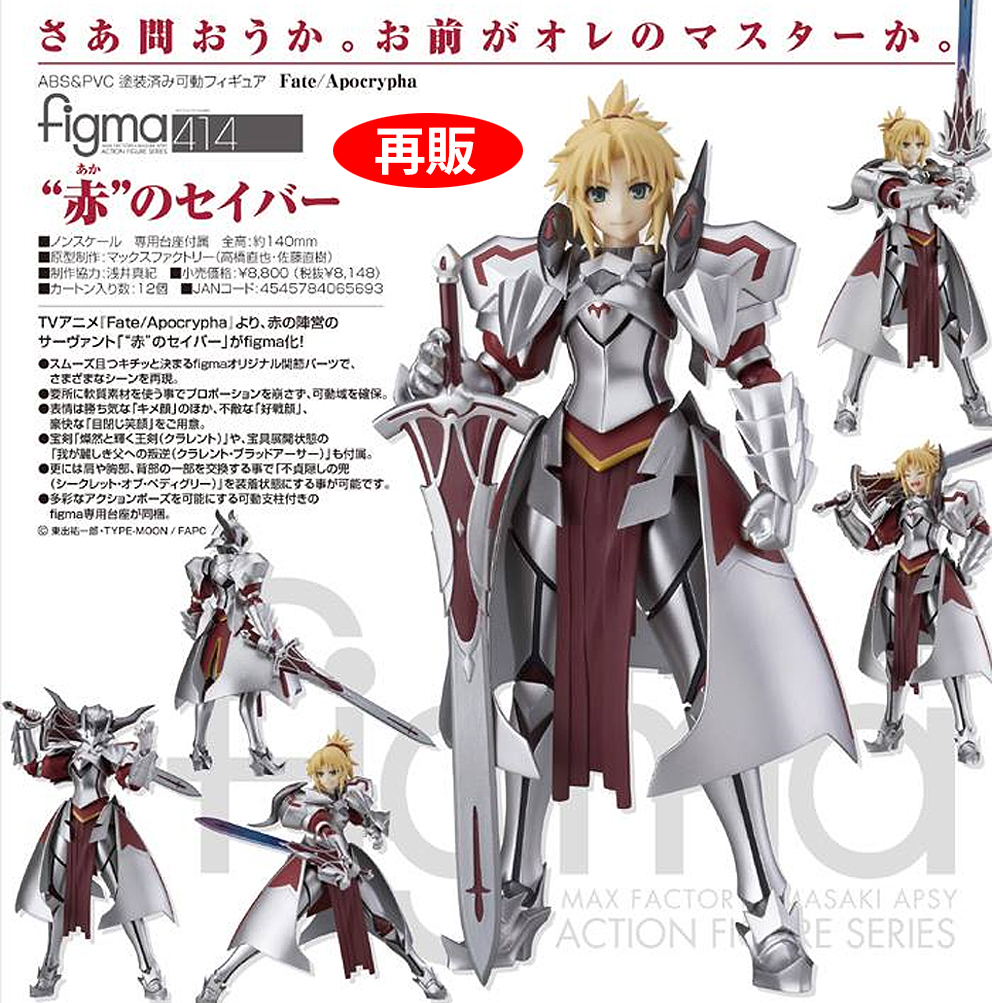 (預訂訂金 $200) (總價 $520) Max Factory figma 414 FGO Fate/Apocrypha “赤”之Saber (再版) (行版)
