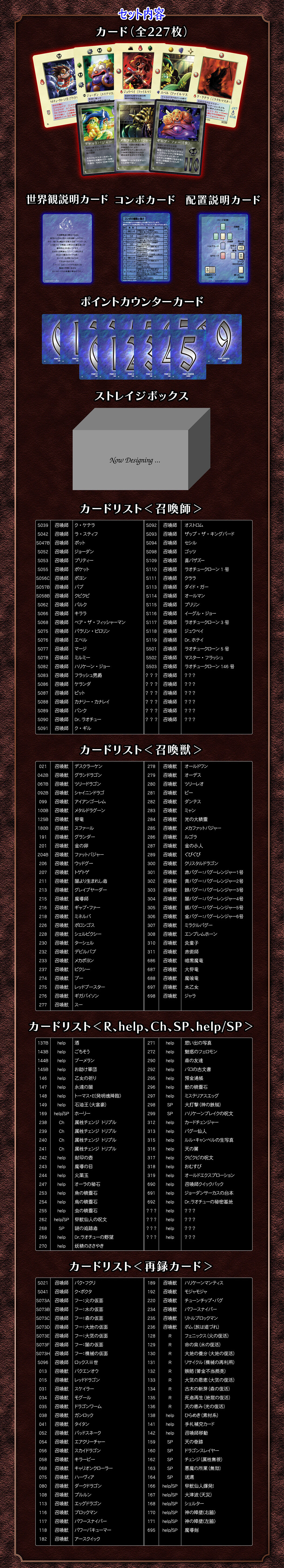 總價: $960 訂金: $500 ⚠️此乃訂購頁面,繳付訂金後,需取貨時進行補款支付餘額:$460⚠️ 截訂日期: 2024年11月21日(※因預訂名額有限,如額滿有可能提前結束,請見諒※) 發售日: 2025年3月 商品狀態: 全新未開封。 《MOZ 召喚王》的第三彈BOX商品登場!! 本次收錄了許多過去發行的格里夫篇卡牌!其中包括當時限定發放的高稀有度卡牌!此外,還收錄了大量新卡牌! 除了豐富的卡片內容,本商品還附帶卡盒、卡套和計分卡!計分卡是《MOZ 召喚王》中首次收錄! 版本: 香港行版 比例: 卡片:約6.3×8.8cm,卡套:約6.6×9.1cm,卡盒:約7×10×5.5cm ・收納盒:約33×11×7.8cm 物料: 收納盒:PP,卡套:PP,卡盒:PP・尼龍 生產商: Bandai JAN code: 4582769775437 【商品內容】: ・卡牌 208張 ・組合卡 1張 ・配置說明卡 1張 ・世界觀卡 1張 ・計分卡16張 ・遊玩指南 2張 ・卡套55張 ・卡盒1個 ・儲存盒 1個 <<預訂須知:>> 1) 此乃訂購頁面,繳付訂金後,⚠️需取貨時進行補款,支付餘額⚠️,若選擇繳付全款的話則無需再補款。 2) 煩請於指定日期內繳付訂金以完成預訂,若未能如期付款,訂單將作取消。 3) 落實訂購貨品後,不能轉訂其他貨品,如需取消訂單,訂金恕不退還。 4) 商品有可能因故變更出貨日期,最終發貨日由官方網站公佈為準,除因生產商或供應商問題未能供貨,否則恕不能取消訂單安排退款。 5) 如因生產商或供應商未能全數供貨,所有訂金將獲全數退回。 6) 照片與實際商品可能會出現稍微差異的情況。 7) 確定下單訂購即視為同意遵守以上相關規定,本店保留最終決定之權利。 <<取貨安排:>> 1) 可選擇到本店門市自取 或 以順豐速運 <運費到付> 形式寄送,客人在收貨時才付運費(運費由順豐速運計算及直接向客人收取)。 2) 預訂貨品到貨後,本店會以WhatsApp 或 SMS 訊息通知取貨, 選擇門市取貨的客人: 另外會以電郵發出「訂單領取通知」,客人可以帶同此電郵的QR code 到門市取貨,或取貨時說出閣下的聯絡電話號碼及出示訊息即可。(門市營業時間: 12:30pm-9:00PM) 選擇快遞送貨的客人: 會以訊息 或 電郵通知補款,確認收到後本店會在三個工作天內(不包括星期六、日及公眾假期)寄出貨品,並會以訊息及電郵通知追蹤號碼已出貨。 所需運費可參考以下順豐速運官網: https://bit.ly/3DY0OPc ※因貨品包裝後的外盒體積都會影響運費計算,如有任何疑問亦可先以訊息聯絡我們客服查詢※ 3) 訂購的貨品,需到貨通知後14天內到取,若未能如期取貨,將作棄單處理,訂金作廢不作退回,恕不另行通知。
