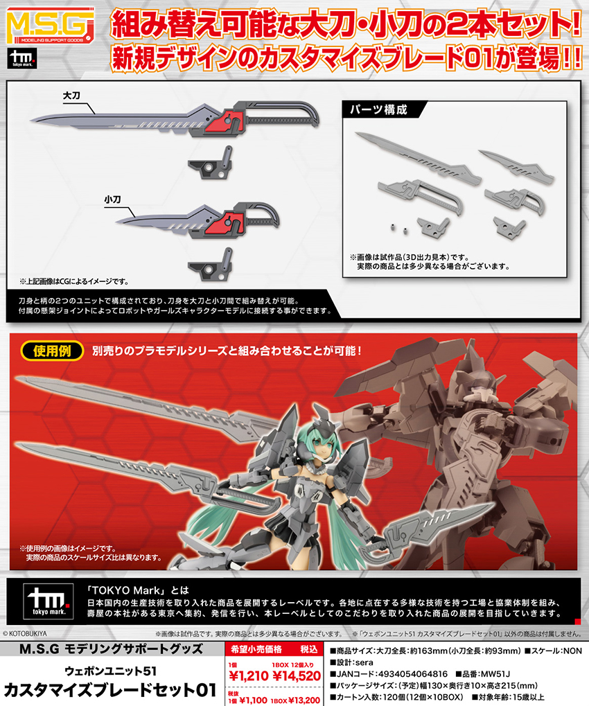 (預訂訂金 $56) (總價 $56) 壽屋 Kotobukiya M.S.G Modeling Support Goods Weapon Unit 51 Customize Blade Set 01 模型 (KO06481) (行版)