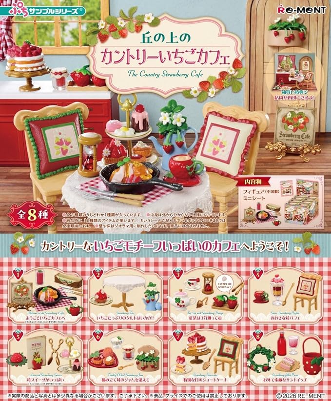 (預訂訂金 $100) (總價 $323) Re-Ment Petit Sample Series Strawberry Cafe 鄉村草莓咖啡店 食玩 (原盒8盒) (1套8款) (行版)