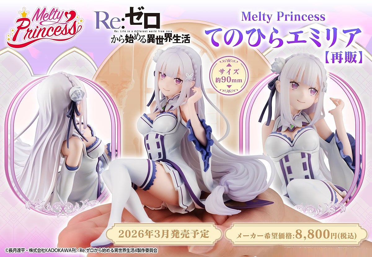 (預訂訂金 $200) (總價 $453) MegaHouse Melty Princess Re : 從零開始的異世界生活 愛蜜莉雅 掌上版 Re:Zero -Starting Life in Another World- Emilia on Palm (再版) (行版)