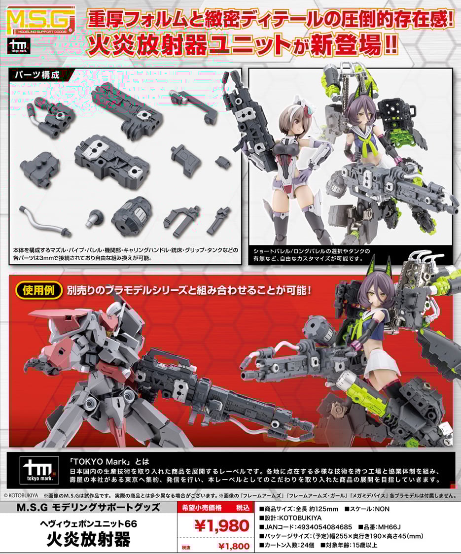 (預訂訂金 $84) (總價 $84) 壽屋 Kotobukiya M.S.G Modeling Support Goods Heavy Weapon Unit 66 Flamethrower 火炎放射器 (KO08468) (行版)