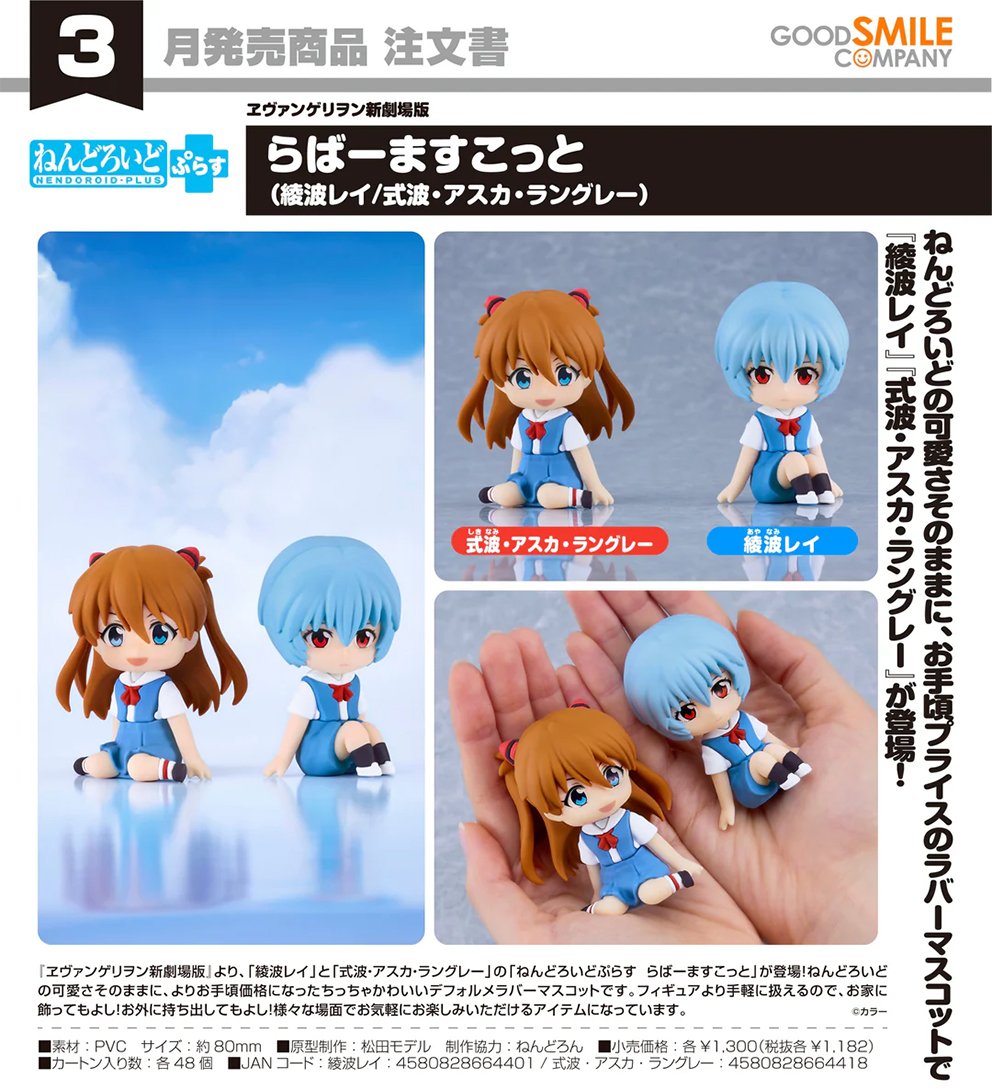 (預訂訂金 各$63) (總價 各$63) GSC 黏土人 Nendoroid Plus EVA 新世紀福音戰士新劇場版 綾波零 / 式波·明日香·蘭格雷 橡膠公仔 (行版)